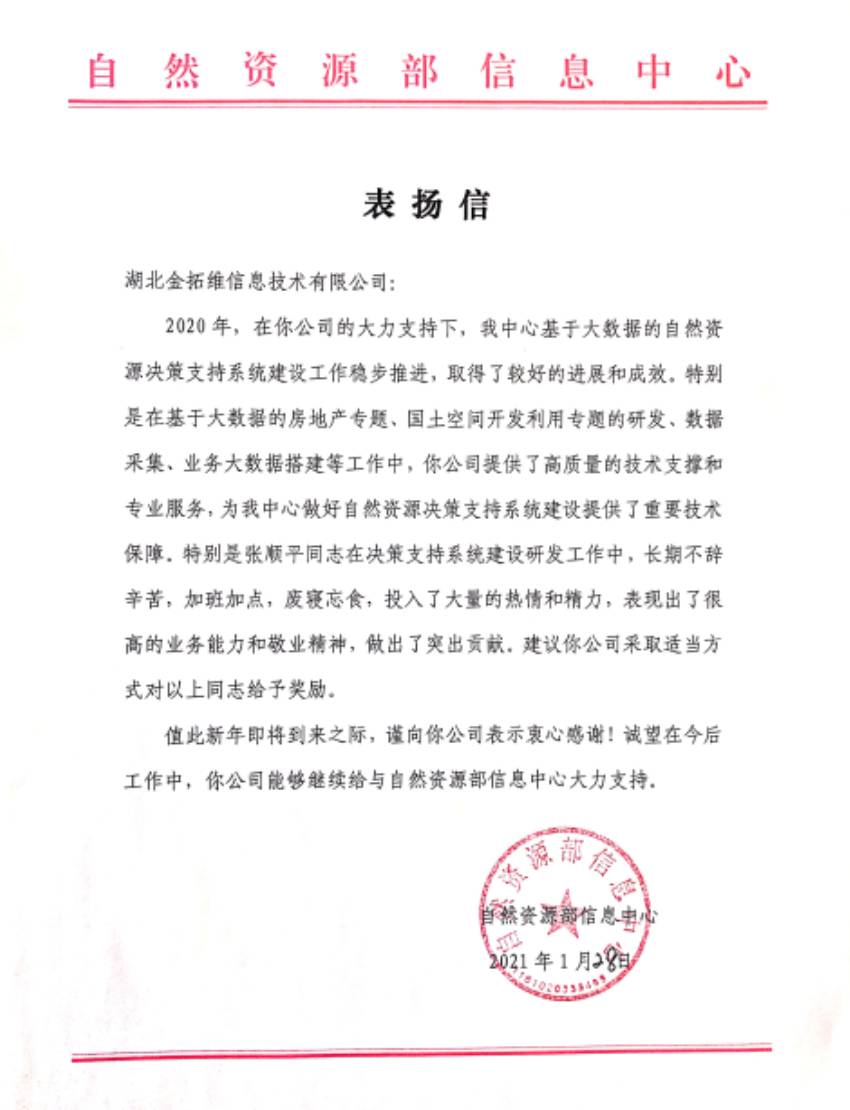 此外,公司還表彰了2020年為公司作出突出貢獻的優(yōu)秀個人,并為獲得了由自然資源部信息中心頒發(fā)表揚信的項目團隊,頒發(fā)了“用戶表揚信特別激勵獎”。