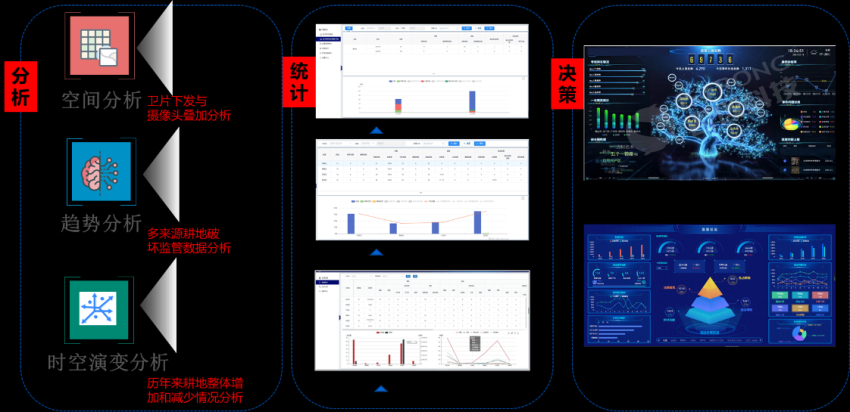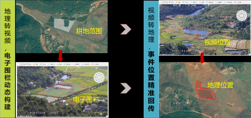 項(xiàng)目綜合運(yùn)用“基于機(jī)器學(xué)習(xí)的視頻識(shí)別,視頻與地理高精度雙向轉(zhuǎn)換、視頻與地理場景融合增強(qiáng)現(xiàn)實(shí),空間大數(shù)據(jù)分析運(yùn)算”等關(guān)鍵技術(shù)為支撐,構(gòu)建“空、天、地、網(wǎng)”的監(jiān)測網(wǎng)絡(luò)體系,實(shí)現(xiàn)對農(nóng)村亂占耕地建房違法違規(guī)行為的“早發(fā)現(xiàn)、早制止、嚴(yán)查處”。