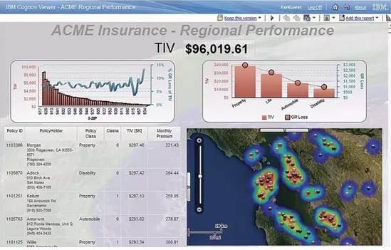 (2) 業(yè)務(wù):Esri Maps為IBM Cognos高量顯示保險(xiǎn)公司的區(qū)域業(yè)績