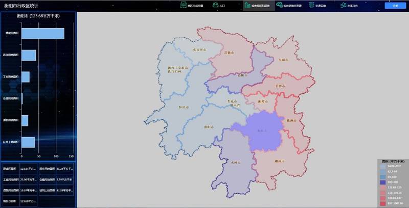 基于“湖南省地理信息公共交換共享平臺”,建設了大數(shù)據(jù)智能分析平臺及一系列應用系統(tǒng);基于大數(shù)據(jù)智能分析平臺,可以定制、快速搭建土地利用變化監(jiān)測、行政區(qū)統(tǒng)計、智能選址、道路高程極值分析、湘江流域基本農(nóng)田分析等應用系統(tǒng)。